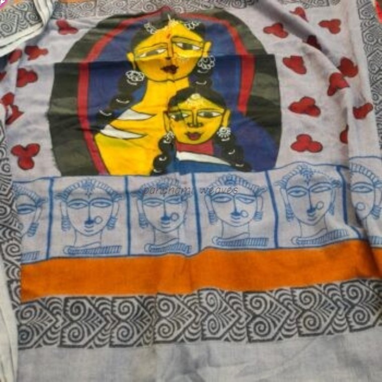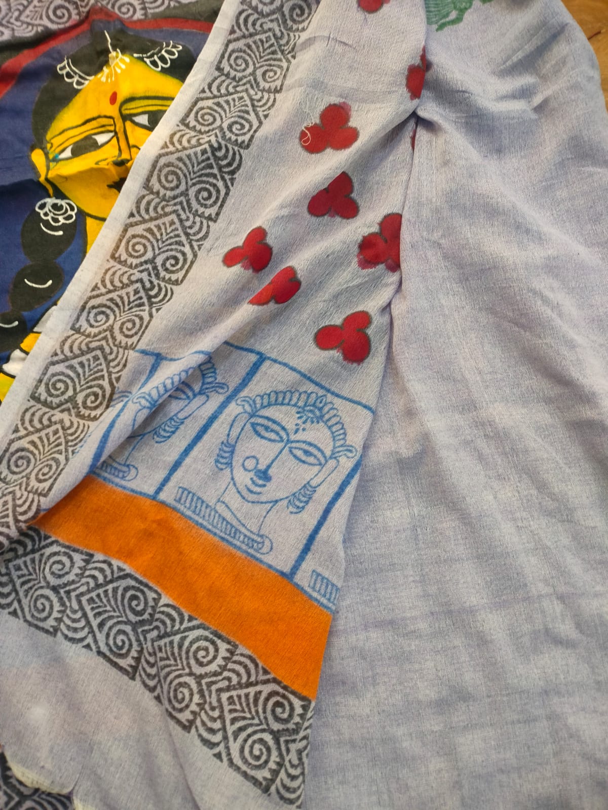 From Bengal, Handpainted, Khadi Cotton, Saree