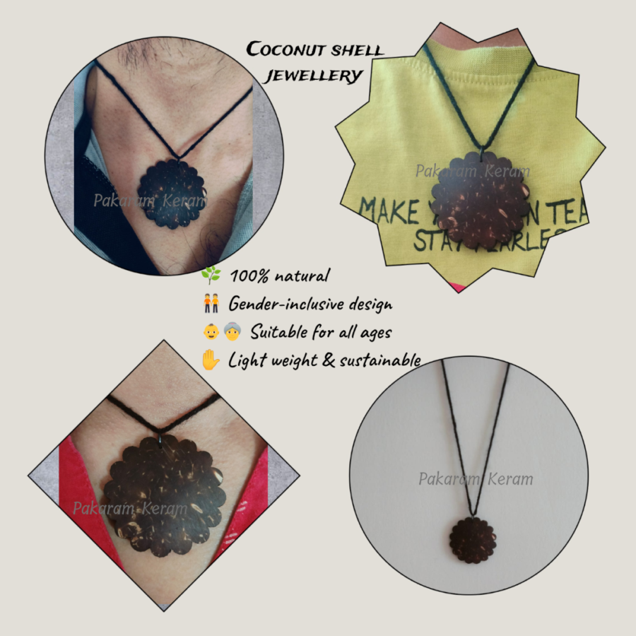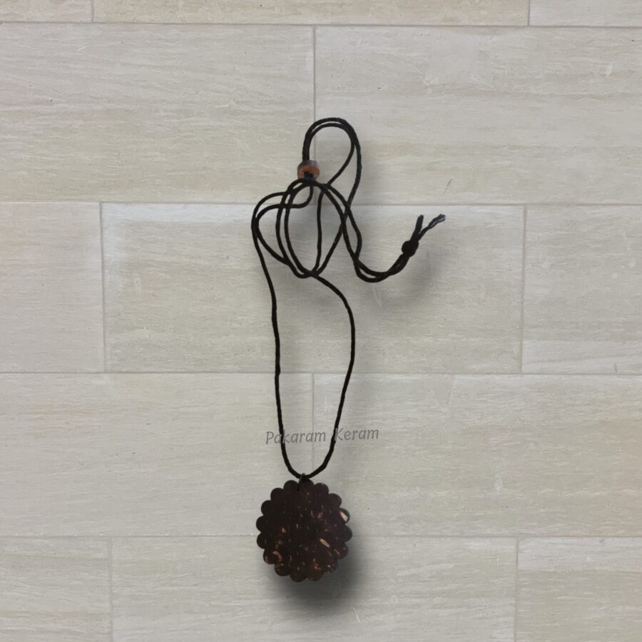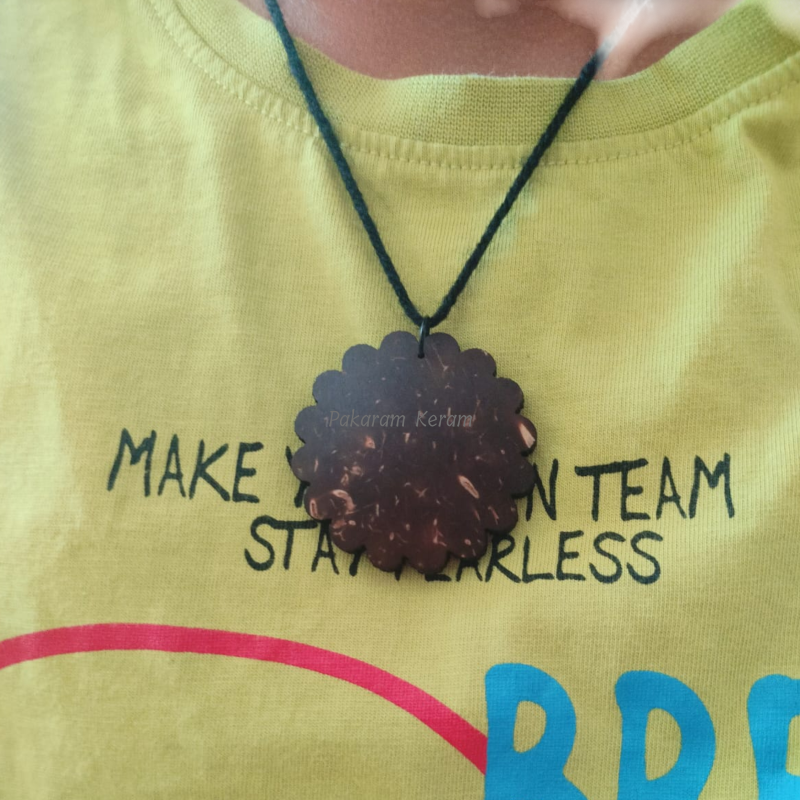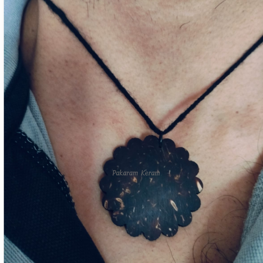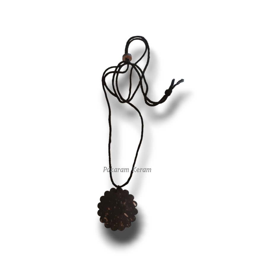A unisex coconut shell pendant necklace designed for all genders, featuring an adjustable cotton woolen thread for versatile styling.