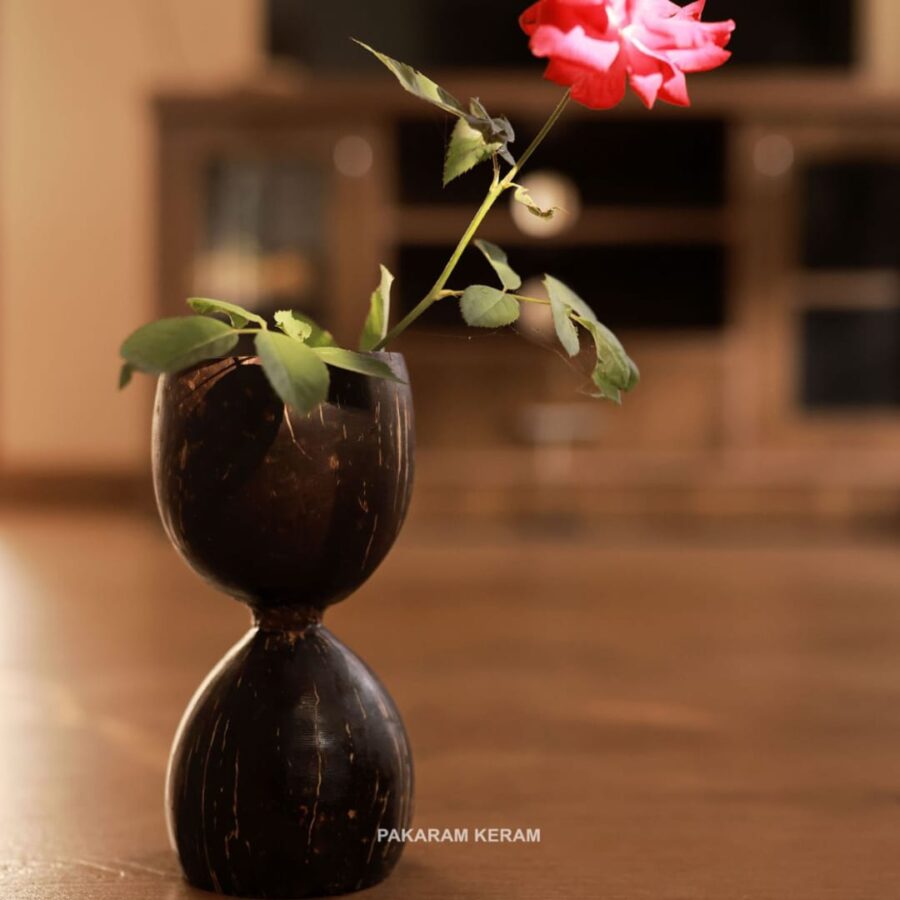 Coconut shells are transformed into beautiful holders. These holders have low impact on the environment, are sustainable and durable.